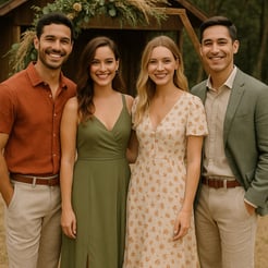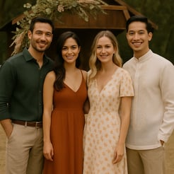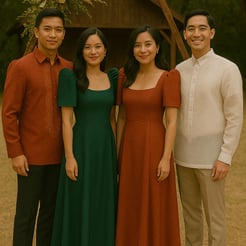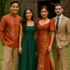 Our wedding will take place in a rustic and natural setting, outdoors under the beautiful sun of the Philippines. The colors of the day: rust, pine green, and beige — warm, earthy tones that blend perfectly with the tropical vibe.